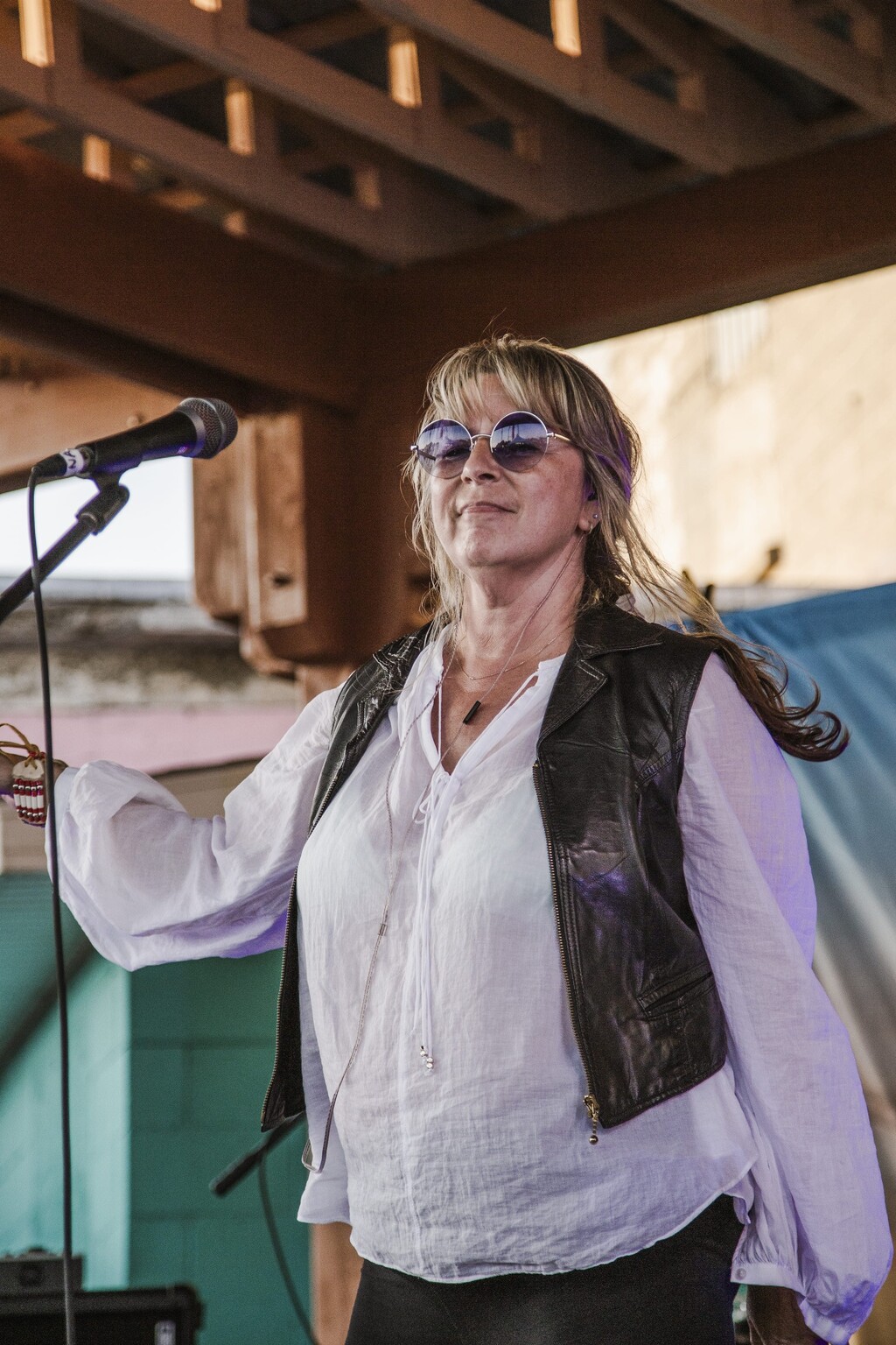 À la voix, elle est une véritable bête de scène et dégage une énergie électrique qui contamine instantanément la foule. Sa voix, d’une puissance brute transperce les enceintes pour aller droit au cœur.